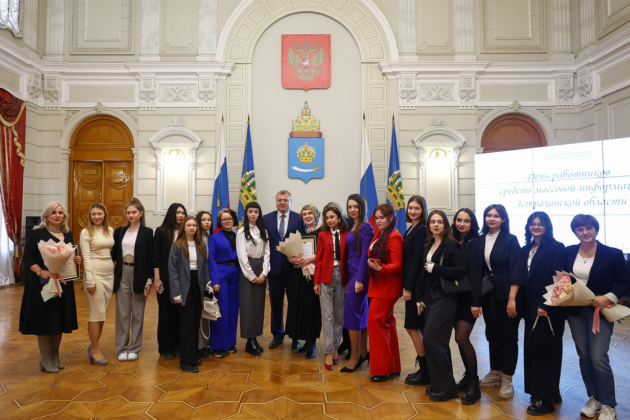 Сегодня в торжественной обстановке губернатор Астраханской области Игорь Бабушкин поздравил медиаспециалистов с профессиональным праздником. Лучшие сотрудники получили благодарственные письма и грамоты.
