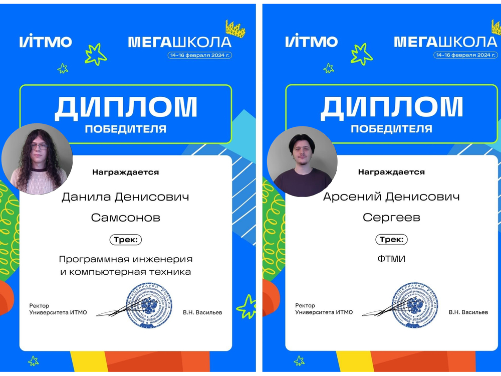 Проявив способности и успешно выполнив задания, студенты АГУ Данила Самсонов стал победителем трека «Программная инженерия и компьютерная техника», а Арсений Сергеев — трека «Технологический менеджмент и инновации».