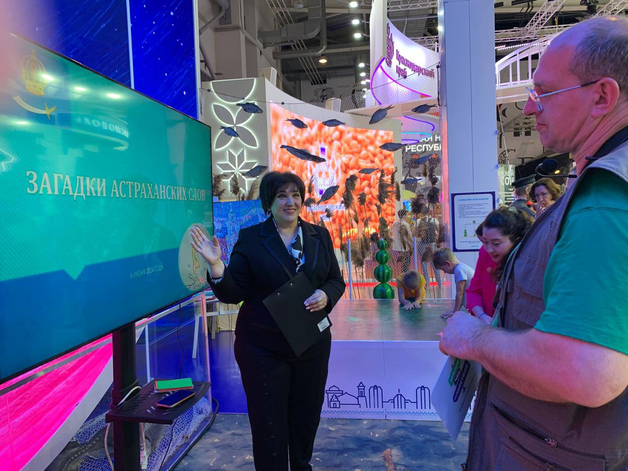 Многочисленные гости выставки принимают активное участие в филологически ориентированных викторинах и конкурсах, организованных Астраханским госуниверситетом.