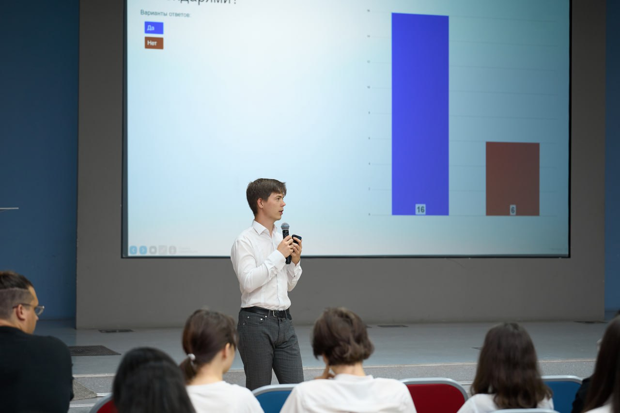 Перед присутствующими выступил эксперт НТИ Антон Мартьянов, который рассказал студентам о технике задавания вопросов. Эта тема была выбрана неслучайно, так как будущим предпринимателям необходимо уметь выстраивать эффективные коммуникации с партнёрами и инвесторами. Максим Ермаков, руководитель проектных офисов Астраханского технопарка СК и университетской стартап-студии 2F выразил благодарность за участие в программе, попросил быть активными и предлагать темы и форматы, которые присутствующие хотели бы видеть в рамках программы. Также Максим Ермаков отметил активную участницу программы, вручив ей памятный подарок.