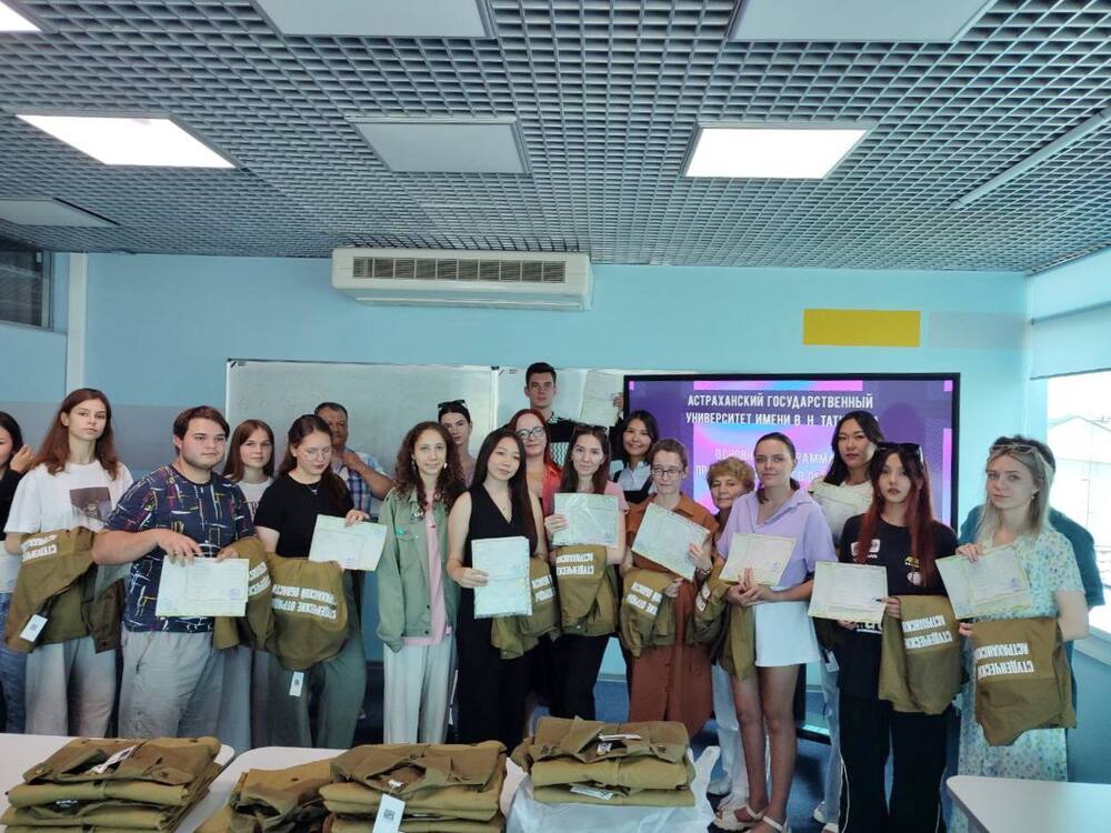 В мероприятии приняли участие ответственный за профессиональное обучение в региональном отделении Российских студенческих отрядов Екатерина Киселева и непосредственный руководитель программы доцент Елена Тарабановская. На вручении были и заведующая кафедрой педагогического образования АГУ Ирина Романовская, а также доценты Марияш Акмамбетова, Людмила Миляева, Игорь Шакиров.