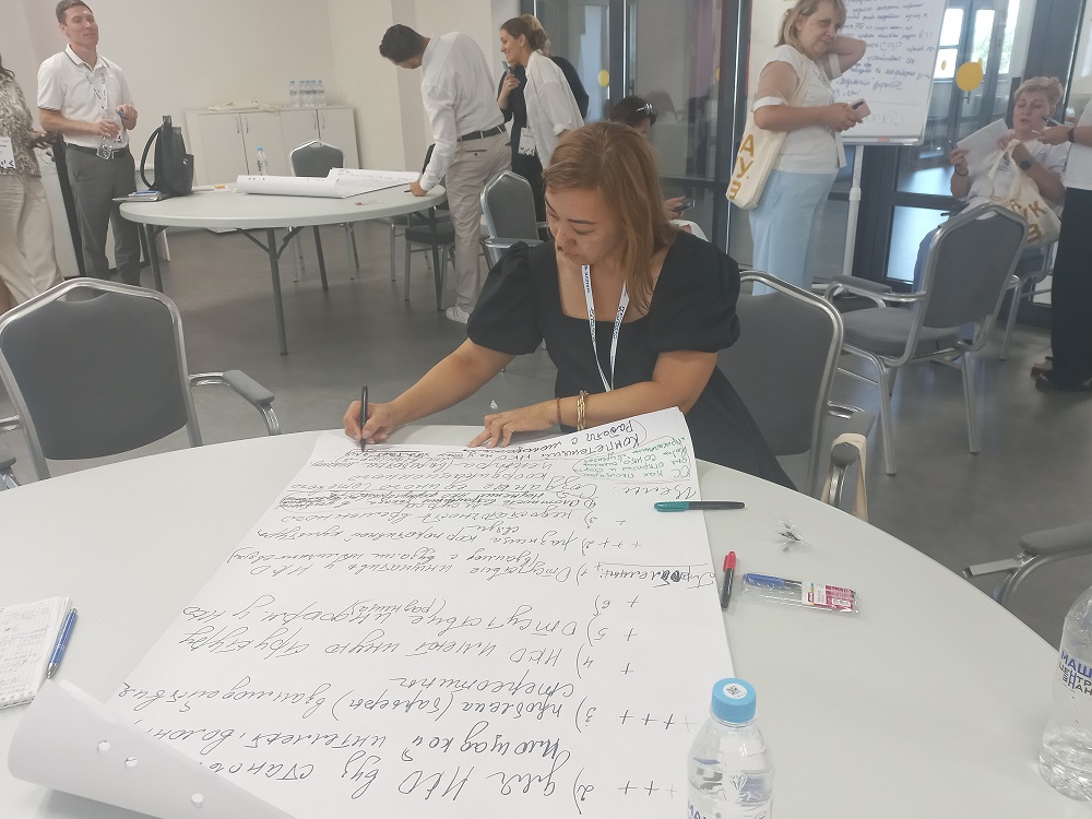 В рамках практических сессий Нурия Зиналиева схематически представила коллегам систему реализации в АГУ социальных проектов программы «Обучение служением», приняла участие в групповой дискуссии «Опыт участия преподавателей в реализации подхода „Обучение служением“», а также в стратегической сессии трека «Стратеги».
