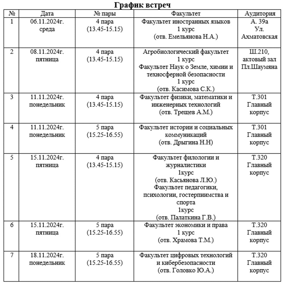 Приглашаем вас на наши встречи, где вы сможете узнать об условиях поступления и процессе обучения в военном учебном центре. Даты и время проведения мероприятий указаны в прикрепленном файле.