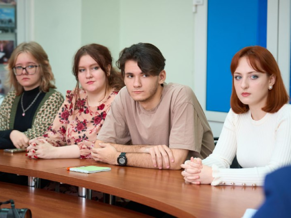 Первый заместитель министра встретился со студентами всех курсов, обучающимися по направлениям «журналистика», «реклама и связи с общественностью», «медиакоммуникации». Встречи проходили в неофициальной дружеской обстановке. Это был диалог на равных, во время которого будущие специалисты делились своими представлениями и ожиданиями от профессии, рассказывали о том, куда бы им хотелось пойти работать или где пройти производственную стажировку, спрашивали совета, с чего начать свой профессиональный путь.