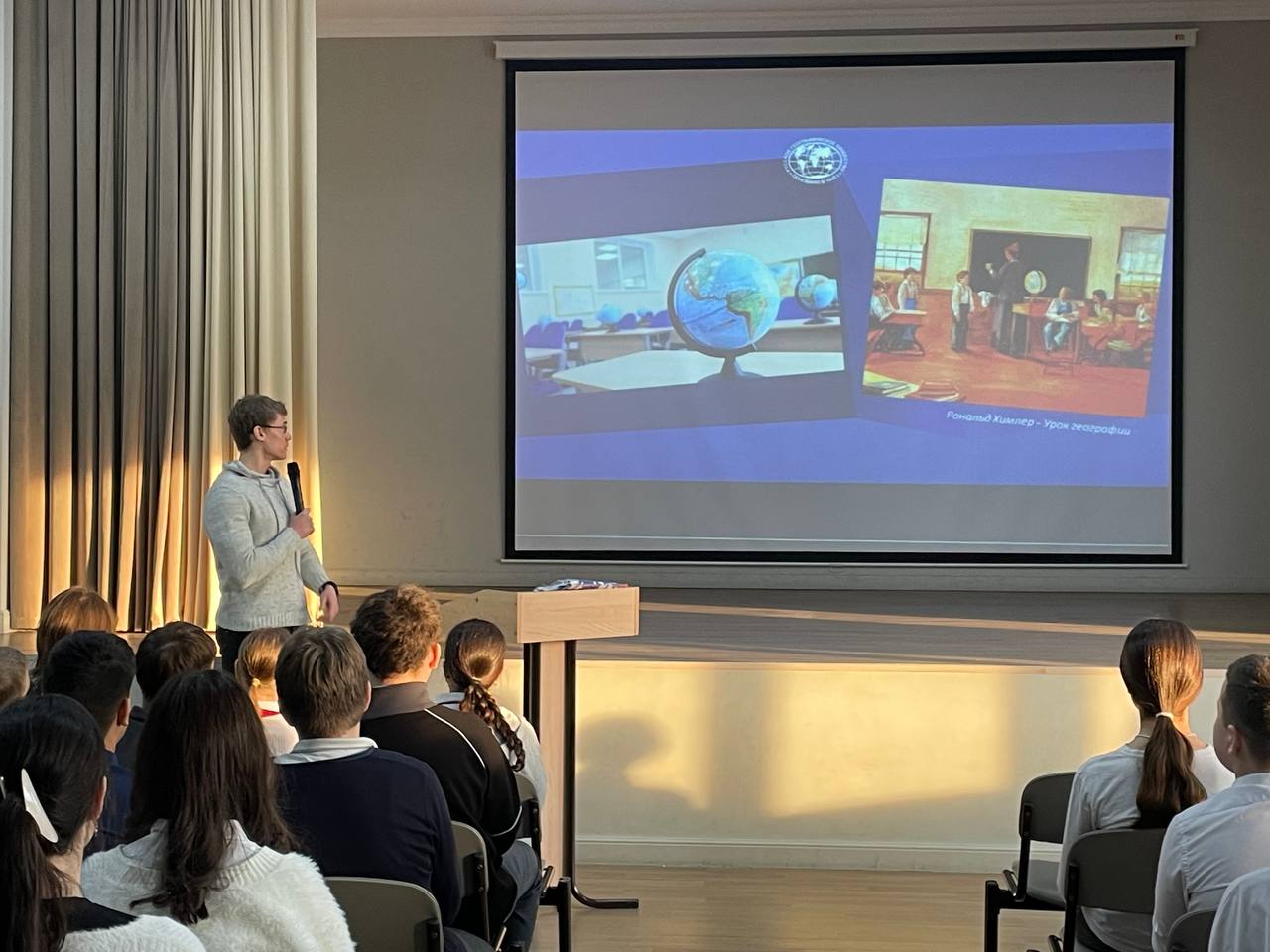 Руководитель молодёжного центра Российского географического общества по Астраханской области, доцент кафедры экологии и природопользования, землеустройства и безопасности жизнедеятельности Виктор Занозин провёл для ребят увлекательное занятие под названием «Изучаем географию и путешествуем вместе с РГО». Во время урока он продемонстрировал школьникам видеоролик, созданный географическим обществом, и рассказал о вкладе членов организации в исследование различных регионов России и мира. Особое внимание уделялось преимуществам членства в РГО и важности командной работы в науке.