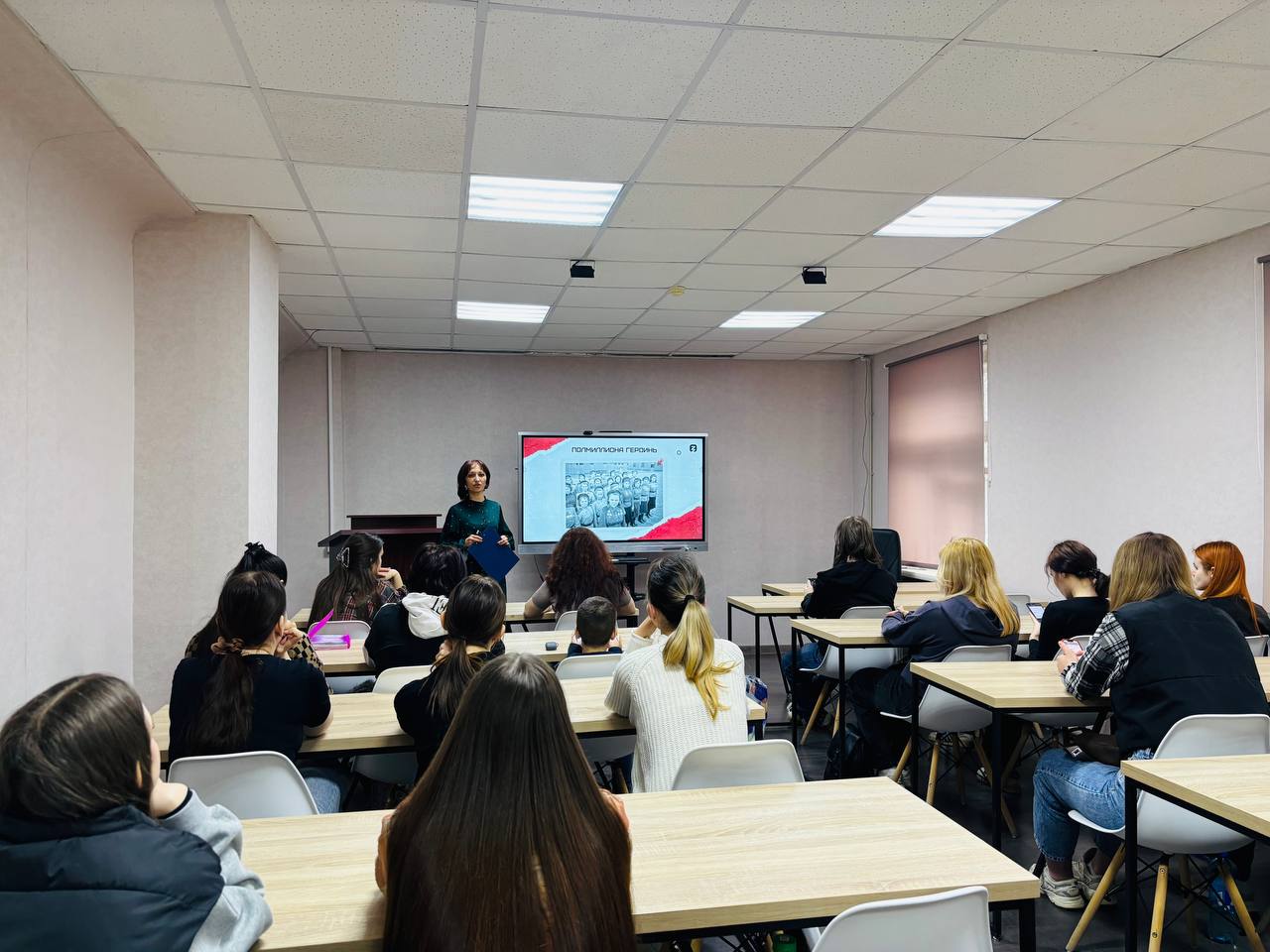 И. о. директора филиала Астраханского государственного университета имени В. Н. Татищева в городе Знаменске Наталья Громова провела интерактивную лекцию «Женщины на войне и в тылу».