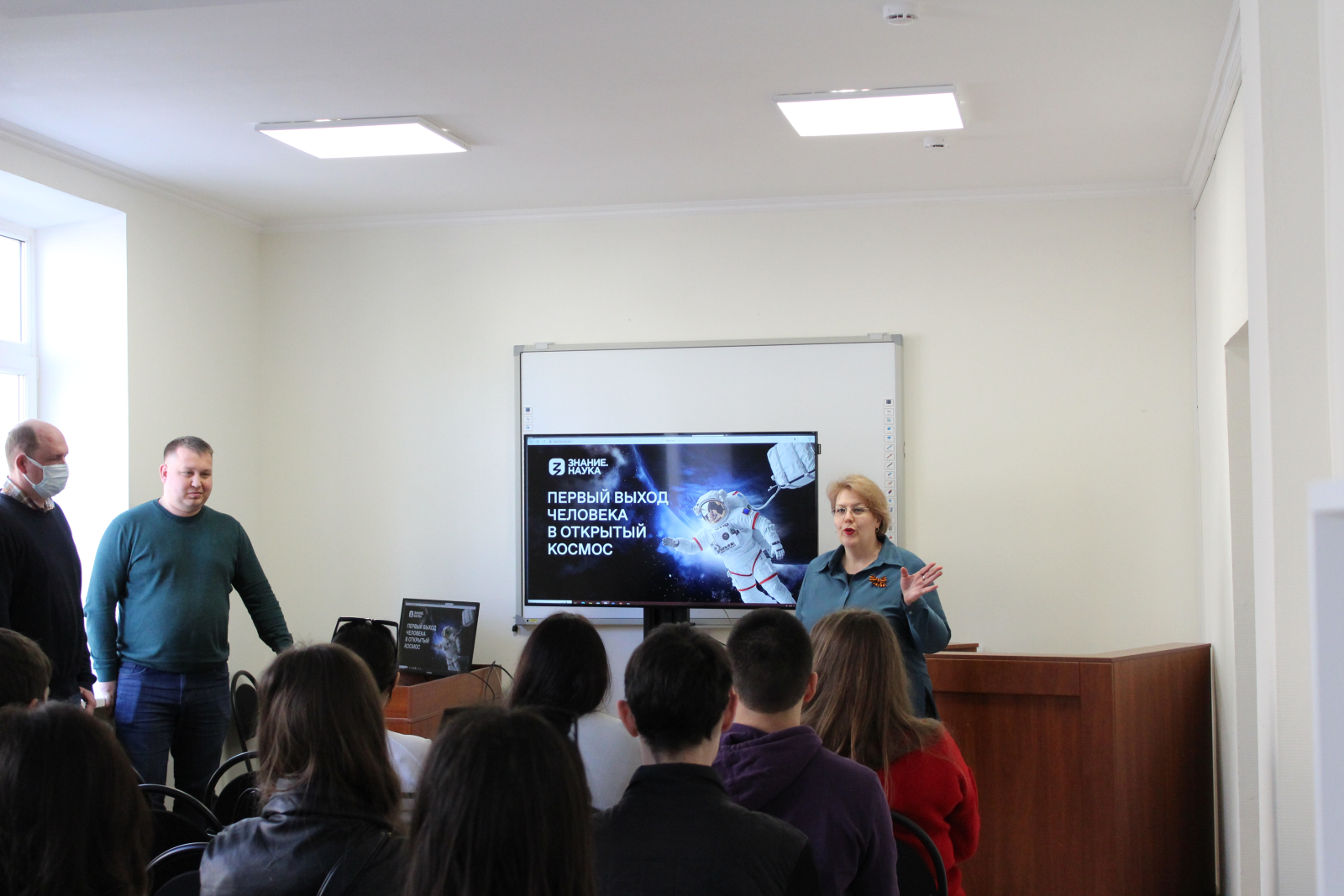 В День космонавтики для студентов факультета экономики и права Астраханского государственного университета имени В. Н. Татищева была проведена лекция-презентация «Космический путь России: навстречу будущему». В качестве спикеров выступили руководитель патриотического клуба «Моя гордость – Россия!» Алексей Леухин и лектор Российского общества «Знание» Степан Кошокин.