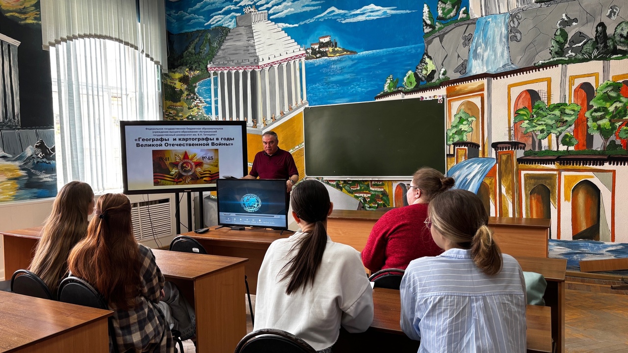 Доцент кафедры географии, картографии и геологии Валерий Занозин подчеркнул, что специалисты-географы сыграли важнейшую роль в подготовке и проведении боевых действий во время войны. Среди них были метеорологи, топографы, геологи, геодезисты, гидрологи и специалисты по медицинской географии, чья работа обеспечивала точное картографирование и анализ природных условий, необходимых для успешных операций.