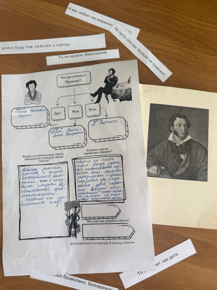 Обучающиеся проверили знание биографии и творчества поэта, ответили на вопросы о сюжетах произведений, процитировали известные строки и познакомились с фактами из его жизни. Особенно их увлекла работа с текстами мемуаров Веры Нащокиной, жены близкого друга Пушкина.