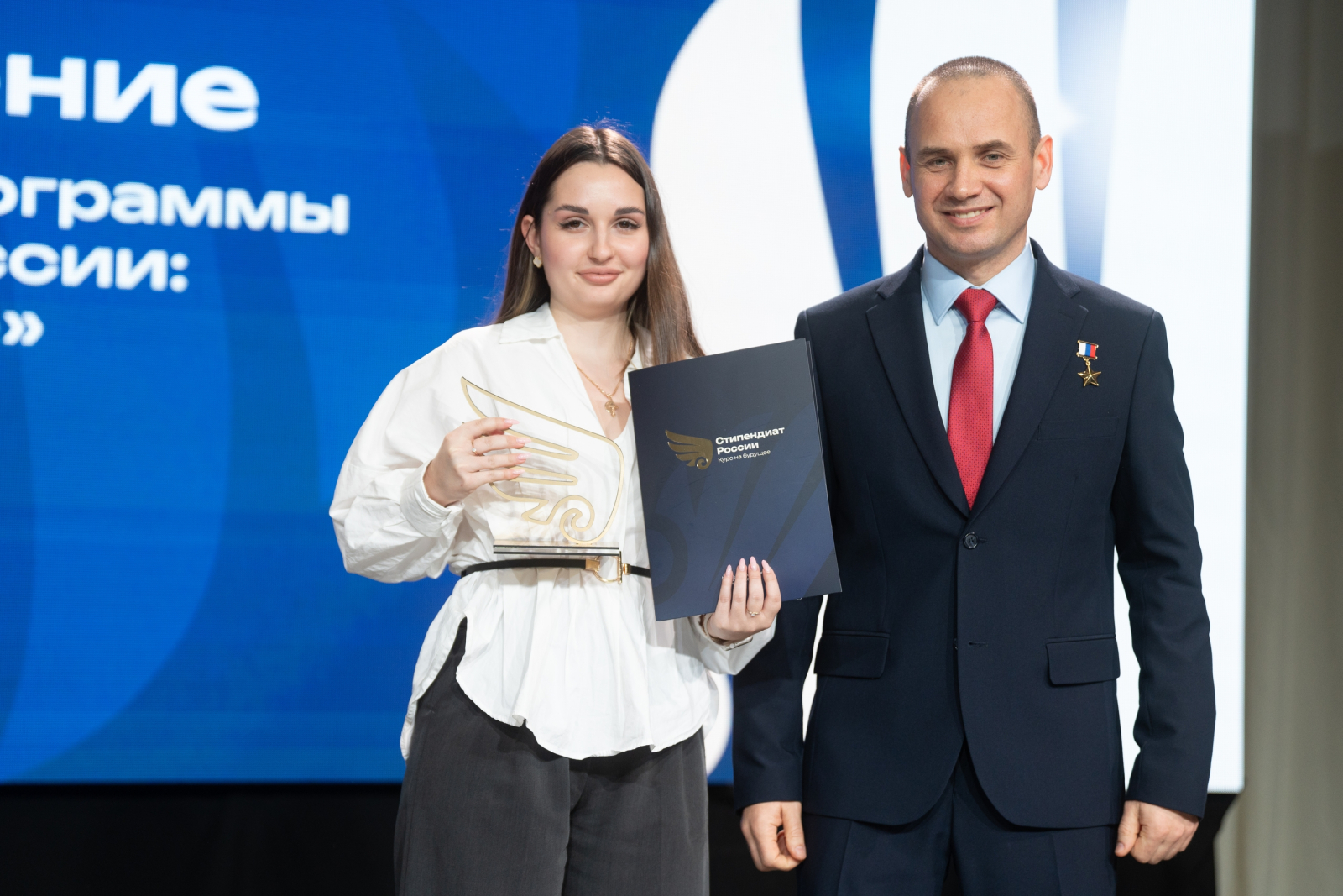 Награды стипендиатам вручили полномочный представитель Президента РФ в ЮФО Владимир Устинов, губернатор Краснодарского края Вениамин Кондратьев и Герой России, участник СВО, директор Департамента государственной молодёжной политики и воспитательной деятельности Минобрнауки России Сергей Бойко.
