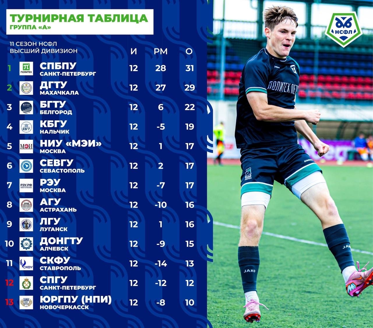 Поздравляем команду студентов Астраханского государственного университета имени В. Н. Татищева с успешным выступлением в Национальной студенческой футбольной лиге (НСФЛ).