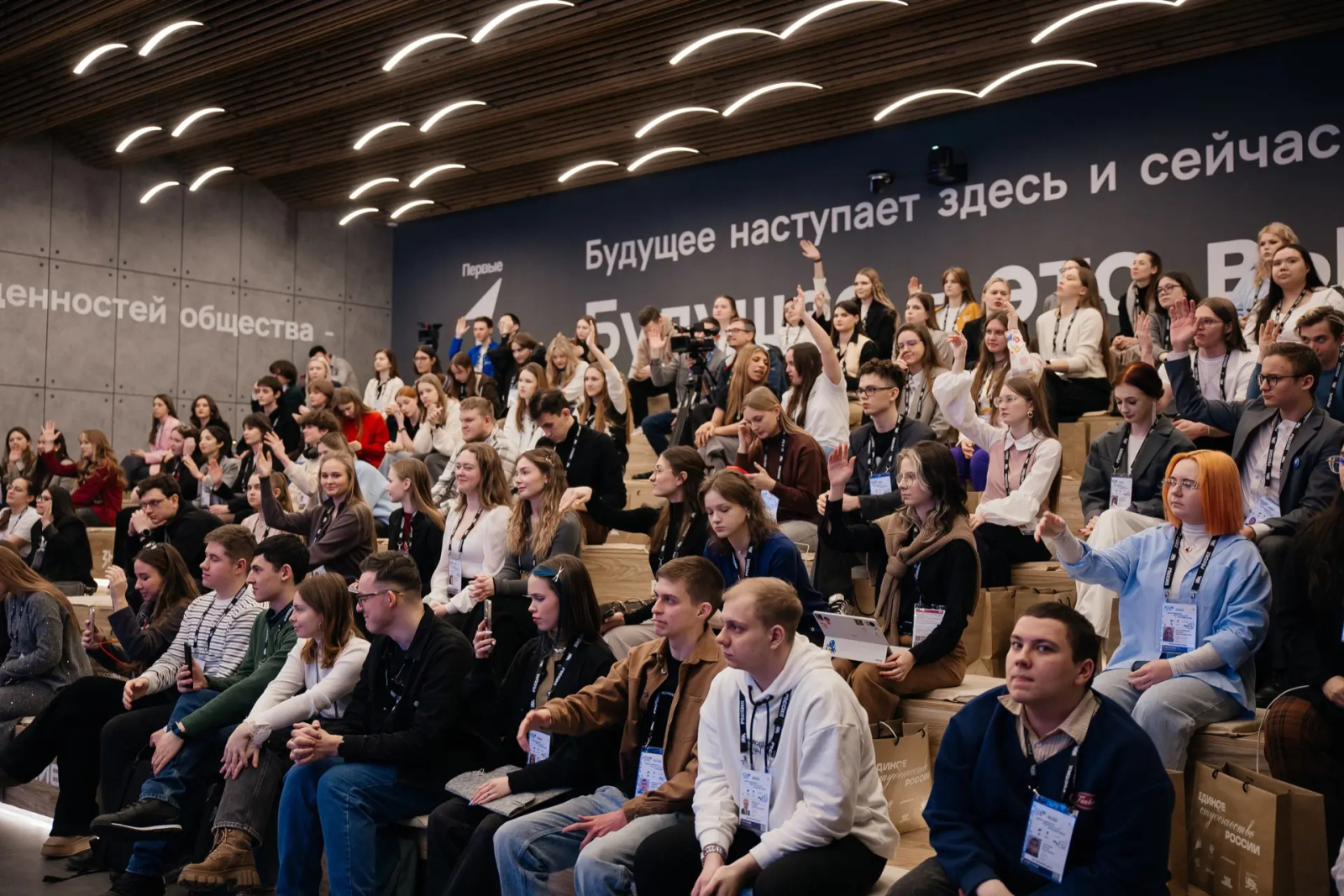 В Национальном центре «Россия» собрались 600 студентов со всей страны. Поздравление с началом нового сезона и Днём студенчества участникам направил вице-премьер Дмитрий Чернышенко.