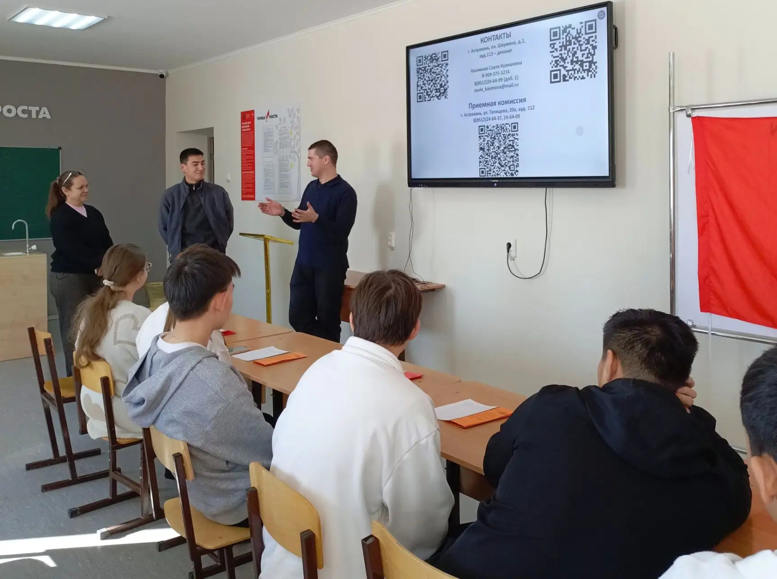 Затем представители университета посетили две школы Володарского района: МКОУ «Володарская СОШ № 1» и МКОУ «Володарская СОШ № 2». Преподаватели подробно рассказали старшеклассникам об условиях поступления в вуз, современных образовательных программах и востребованности выпускников на рынке труда.