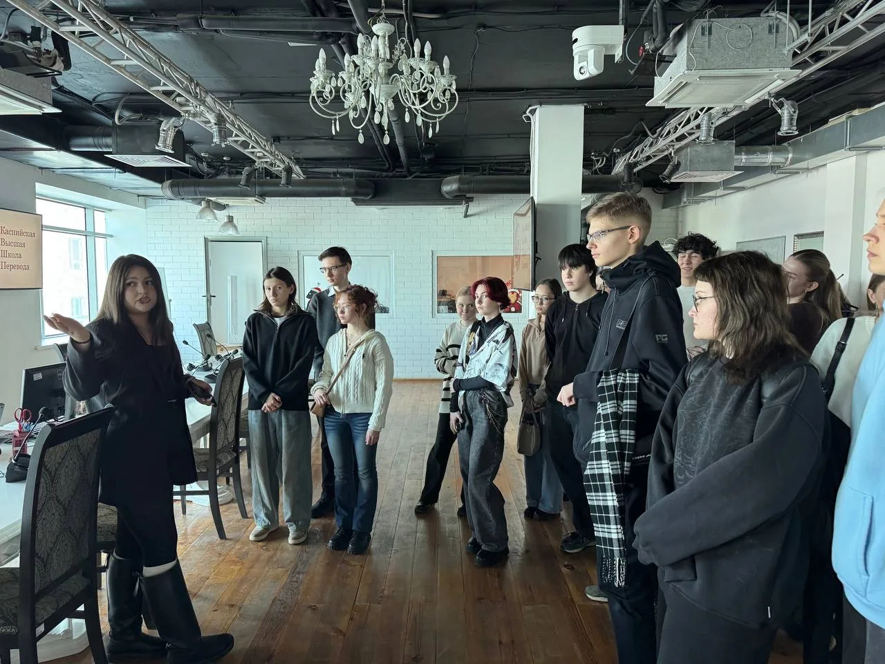 В Каспийской высшей школе перевода учащиеся узнали о подготовке устных и письменных переводчиков в соответствии со стандартами ведущих международных организаций и переводческих ассоциаций. Переводчик Екатерина Пахомова проинформировала старшеклассников о курсах по основам синхронного перевода и работе с программами машинного и автоматизированного перевода.
