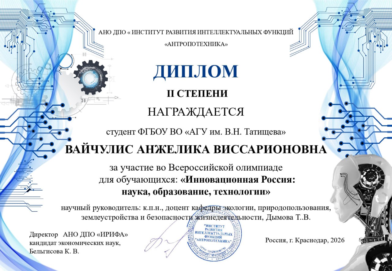 Студентка АГУ стала призёром олимпиады «Инновационная Россия»