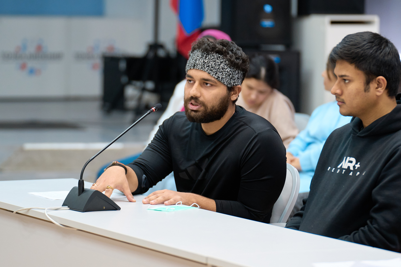С индийской стороны к участникам встречи обратился лидер студенческого коллектива Гуджаратского университета Аакаш Чавда: