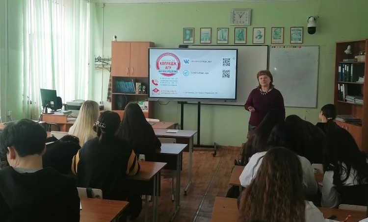 Заместитель директора колледжа АГУ по развитию Елена Карякина и преподаватель Татьяна Кошманова рассказали старшеклассникам о программах среднего профессионального образования. Учащиеся узнали об особенностях поступления, специальностях, практиках, трудоустройстве выпускников и преимуществах обучения в колледже АГУ.