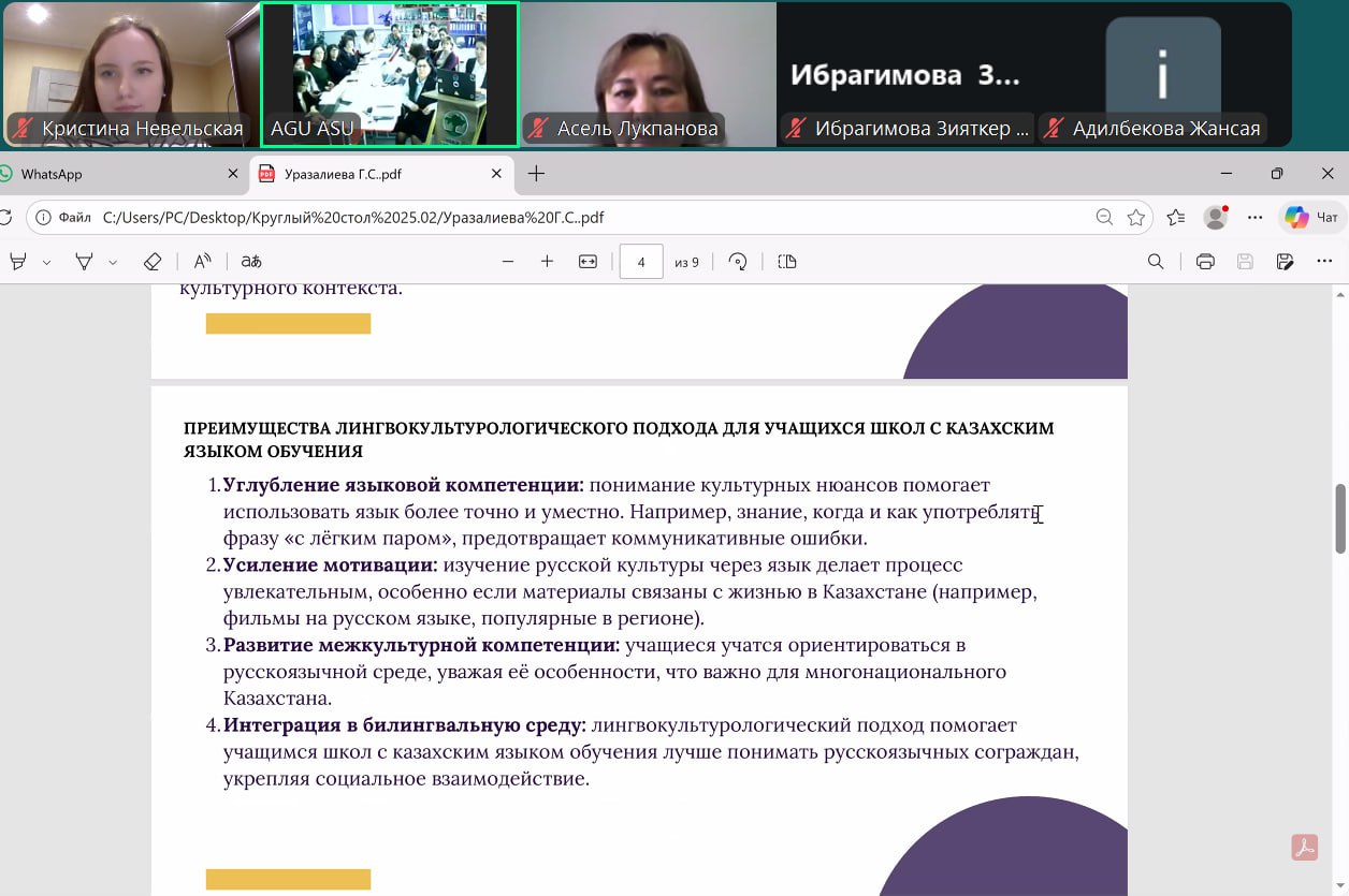 Магистранты, обучающиеся по направлению подготовки «Русский язык как иностранный», в дистанционном формате приняли участие в работе Круглого стола «Русский язык в диалоге цивилизаций: методологические и лингвокультурные перспективы», организованного коллегами из Казахстана.