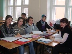 Подходит время четвёртой пары. На занятиях у Н.В. Лукиной группа повторяет русские скороговорки, песни, изучает синтаксический строй простого предложения. А нам Наталия Владимировна даёт возможность познакомиться с недавно прибывшими студентами. Ребята из Туркменистана очень весёлые, доброжелательные, сразу нашли общий язык и с сокурсниками, и с нами. Почему же они решили учить русский язык? Азизбек Юсупов удивил нас своим ответом: оказывается, в Туркменистане для того чтобы устроиться на престижную работу, нужно знать именно русский.