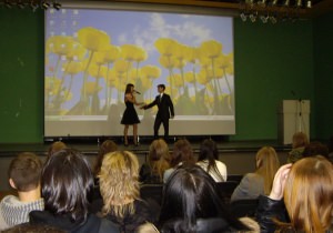 Людмила Юрьевна подробно рассказала абитуриентам об особенностях приёма в вузы в 2011 году, о преимуществах обучения в АГУ и, конечно же, на филфаке, где в этом году будущим студентам предлагается обучение по трём направлениям бакалавриата («Филология», «Педагогическое образование» (профиль «Русский язык и литература»), «Журналистика») и программам магистратуры («Языковое образование», «Литературное образование», «Межкультурная коммуникация»). Дни открытых дверей на филфаке всегда проходят необычно: осень была посвящена творчеству А.П. Чехова, зимой состоялась викторина среди абитуриентов на знание русского языка и литературы. Факультет не стал нарушать традиции и в этот раз, подарив гостям мгновения музыки и танца.