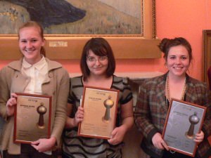 Чтобы скрасить тягостные минуты ожидания результатов, для ребят была организована экскурсия в гравюрный кабинет галереи, в то время как организаторы конкурса тщательно проверяли работы. «Всем участникам есть к чему стремиться», – таков был вердикт председателя жюри, и.о. заведующей кафедрой теории и истории журналистики АГУ, доктора филологических наук М.Ю. Звягиной. Тем не менее, победители определились довольно легко: «Золотая литер@» досталась девятикласснице МОУ «Астраханский технический лицей» Валентине Гайфитдиновой, «Серебряная литер@» была присуждена учащейся 11 класса МОУ «Гимназия № 2» Владиславе Болдыревой, а «Бронзовая литер@» оказалась у её одноклассницы Альбины Усмановой. Остальные конкурсанты получили благодарственные письма.