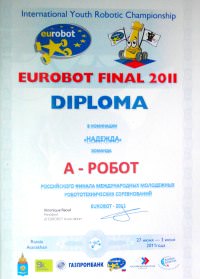 Команда Астраханского государственного университета A-Robot стала победителем в номинации «Надежда» на международных молодёжных робототехнических соревнованиях «Евробот-2011»