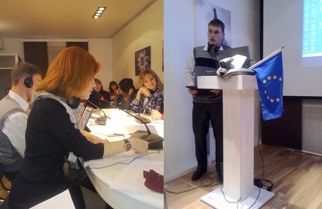 В течение недели будущие переводчики готовились сымитировать реальную конференцию – провести занятие в формате «mock conference» на тему «Женщины в политике». В ходе мероприятия магистранты настолько хорошо вжились в роль, что собравшихся не покидало ощущение присутствия на конференции, проходящей в европейском институте.