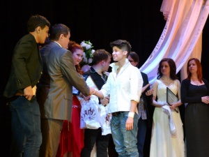 В завершение вечера ректор АГУ А.П. Лунёв искренне поздравил всех конкурсантов и поблагодарил организаторов проекта за помощь и всестороннюю поддержку. Результаты судейства жюри оказались следующими: лауреатами 3 степени стали Диана Мусаева и Регина Канеева, 2 степени – Полина Окунева и Дмитрий Дубровский, 1 степени – Алина Гафурова. Победителем конкурса, обладателем гран-при, по праву был признан Валерий Каула, выступивший со знаменитой песней «Belle» на французском языке. Талантливому артисту удалось передать вокальные партии всех 3 исполнителей данной композиции, каждый раз изменяя тембр своего голоса.