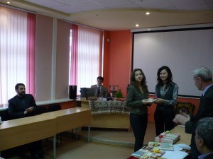 Стол, украшенный проросшей пшеницей и остальными предметами иранского Нового года (семь из которых постоянны и каждые из них в начале своего названия имеет букву "С"), 22 марта можно было увидеть на факультете иностранных языков АГУ, где студенты и преподаватели отделения восточных языков собрались в честь празднования Ноуруза. Их гостями были представители иранской диаспоры, в числе которых поздравления с иранским Новым годом принимал и недавно прибывший в Россию новый генеральный консул Исламской республики Иран в Астрахани г-н Мейгуни. Он заявил, что намерен в ближайшее время провести рабочую встречу в нашем университете и обсудить пути содействия нашему вузу в его связях с Ираном. В конце праздника заведующий отделением восточных языков А.А. Мухин пригласил на сцену 10 лучших студентов года и вручил им "ейди" (новогодние подарки), подготовленные культурным представительством Посольства Исламской республики Иран в РФ. Призы вручали также заведующий центром иранистики, старший преподаватель АГУ С. Борзу и экс-чемпионка Всероссийской олимпиады по персидскому языку и литературе, студентка 5 курса Ж.Г. Жалпакова.