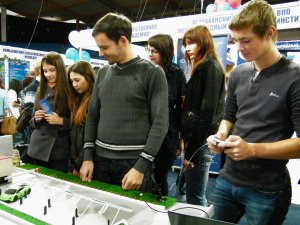В течение 3 дней АГУ демонстрирует свои достижения по всем направлениям деятельности – от учебной до инновационной. Будущие абитуриенты, их родители и просто заинтересованные астраханцы, посещающие мини-выставку нашего вуза, знакомятся с продукцией малых инновационных предприятий, раздаточными материалами Приёмной комиссии, дегустируют вкусные «экспонаты», приготовленные сотрудниками Регионального инновационного центра ресторанного бизнеса и правильного питания. Значительная часть выставочной площадки АГУ отведена под инновационные разработки в области инженерии. Так, посетителям предлагается понаблюдать в действии парковочный комплекс «Smart Parking», поуправлять различными роботами. Интеллектуальные машины, созданные преподавателями и студентами физико-технического факультета, а также сотрудниками Научно-образовательного центра перспективных технологий в электронике и робототехнике, способны сопровождать гостей по какому-либо зданию, перемещать грузы, передавать информацию о том, какой объект находится в зоне видимости, и даже обнаруживать предметы различного свойства, например, взрывчатые устройства. Министр образования и науки области В.А. Гутман во время осмотра экспозиции АГУ особое внимание обратил именно на робота-разведчика, посоветовав его авторам предложить данный проект МЧС. «Астраханский госуниверситет играет свою роль в развитии конкуренции вузов нашего региона, и для нас это очень важно, – подчеркнул Виталий Александрович. – Мы сотрудничаем с АГУ в реализации научно-образовательных программ, совершенствовании технологий и методик, организации обучающих мероприятий. Перспективу нашего взаимодействия я вижу также в подготовке и переподготовке кадров».