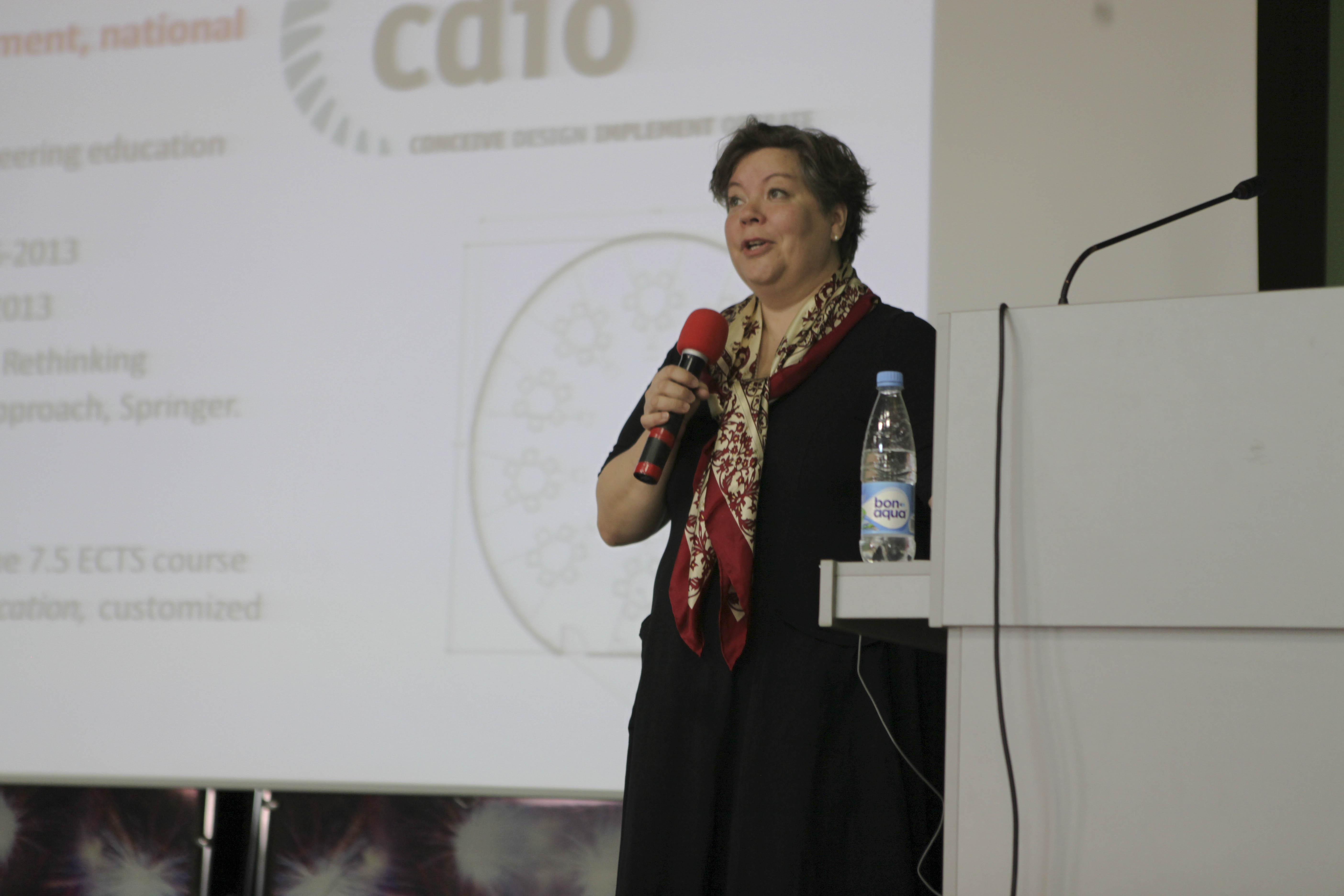 Одним из ключевых выступлений на конференции стал доклад идеолога CDIO, профессора Королевского технологического института (г. Стокгольм) Кристины Эдстром. Зарубежный эксперт поделилась с коллегами опытом по повышению ценности обучения и рентабельности преподавания, сфокусировав внимание слушателей на профессиональных компетенциях педагога. Госпожа Эдстром также провела для участников научного форума мастер-класс по развитию основных идей CDIO.