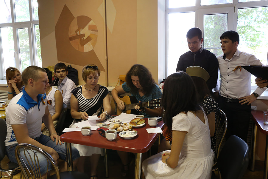 Мероприятие, организованное профсоюзным комитетом АГУ и факультетом социальных коммуникаций, традиционно проходило в небольшом уютном зале студенческого кафе. За столиками с горячим чаем - студенты и преподаватели. Часто за одним столом. Основа программы вечера - ставшие классикой стихотворения и фронтовые песни. Звучали и авторские сочинения, которые давно стали отличительным признаком таких вечеров в АГУ.