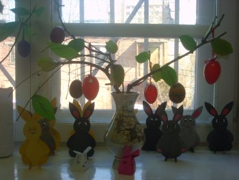 Аудитория была украшена не только плакатами с пасхальной тематикой, но и зайцами (именно они в Германии, по легенде, приносят крашеные яйца на Пасху), пасхальными гнездами и букетами, сделанными студентами. В празднике приняли участие два ансамбля из Русско-немецкого дома.