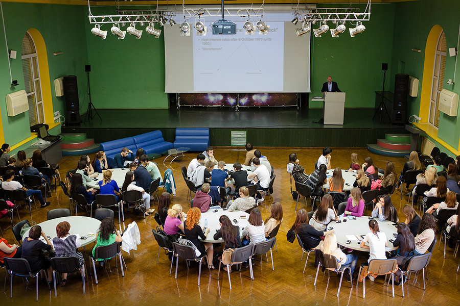 В рамках визита профессора Венецианского университета Дуччио Басози, специалиста по истории международной экономики, 23 сентября в актовом зале состоялась встреча со студентами факультета мировой экономики и управления.