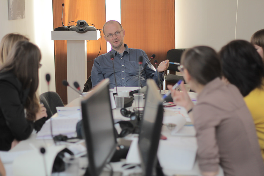 В течение последующих двух дней у них также состоялись занятия с Илгой Берзиной и Лиэмом Лонгом по последовательному переводу, основам переводческой скорописи, а также знакомству с Европарламентом, его структурой и деятельностью. Надеемся, что в скором времени Лиэм Лонг и Илга Берзина снова приедут в Астрахань для работы с магистрантами и проведения очередных занятий. Будем ждать с нетерпением его приезда, и продолжать практиковать последовательный и синхронный перевод, применяя те знания, которые были получены во время занятий с нашими брюссельскими коллегами.