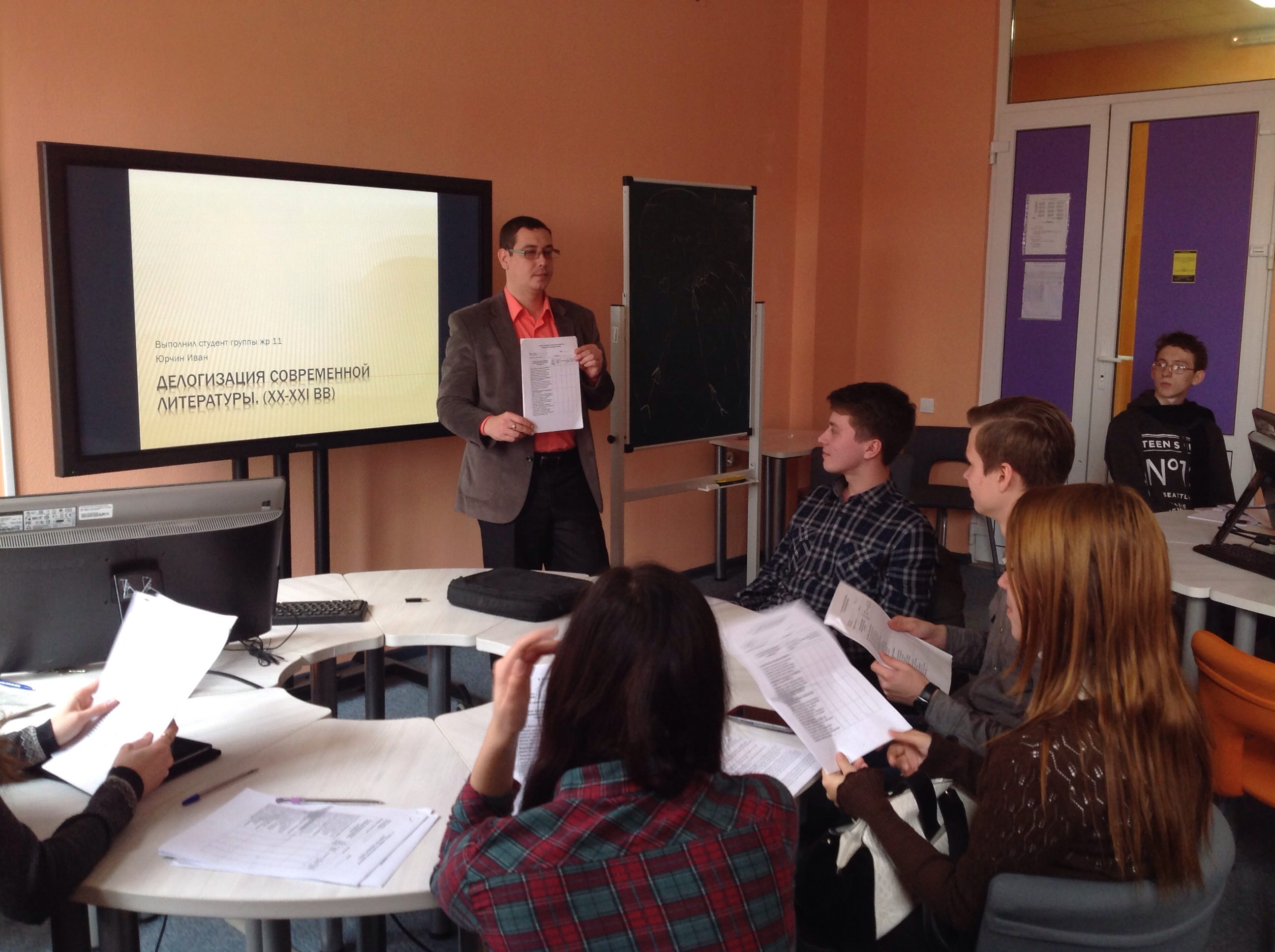 В рамках дисциплины «Логика» студентами факультета филологии и журналистики и факультета социальных коммуникаций были успешно реализованы проекты: «Процессы делогизации в современном обществе: взгляд будущего журналиста» (команда гр. ЖР 11), «Процессы делогизации в современном обществе: социологический анализ» (команда группы СЦ 31). Студенты самостоятельно выбирали и анализировали процессы и явления современной общественной жизни, которые, по своей сути, противоречат законам логики. Тематики исследований, представленные в электронных презентациях, охватили широкий круг проблем от делогизации проявлений молодежных субкультур, явлений массовой культуры до гендорной проблематики. Завершающим этапом стала оценка командной работы, посредством анкеты по критериям CDIO.
