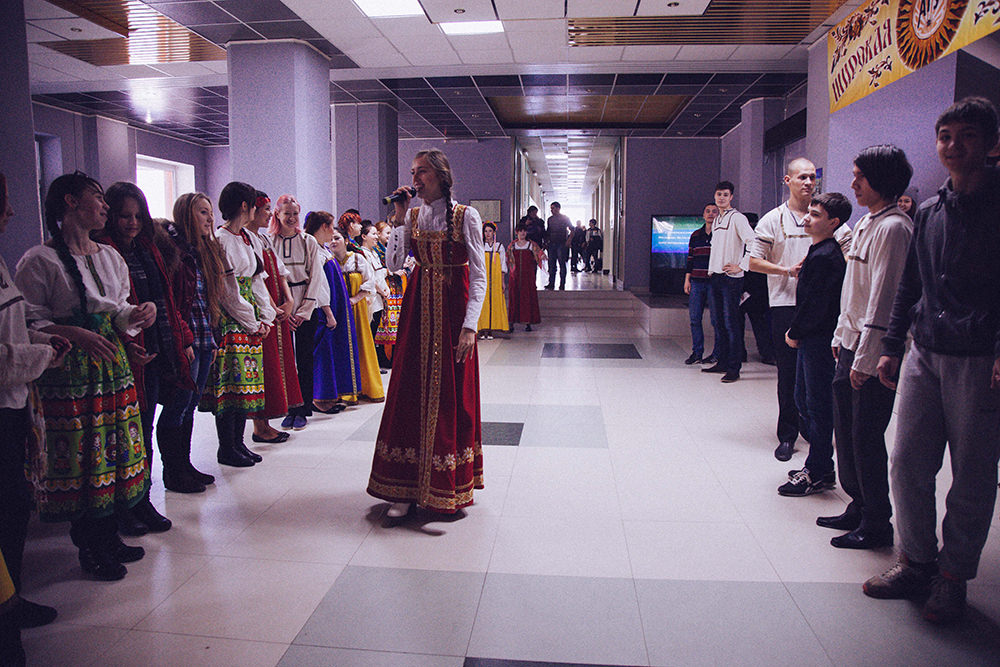 В Астраханском государственном университете сегодня прошли масленичные гуляния. Вместе с традиционным играми и забавами в холле главного корпуса, волонтеры провели акцию по поздравлению сотрудников и преподавателей.