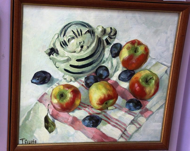 Из подаренных студентами прошлых лет «АРТ-САЛОНУ» творческих работ был скомплектован первый пробный блок из 10 работ. Подарки поместили в материальный отдел, юридический отдел, отдел бухгалтерского учёта, планово- экономический отдел, диспетчерскую службу, расчётный отдел, общий отдел, управление делами, службу главного инженера. Картины выполнены в жанре натюрморт. Использованы техники акварель и гуашь. Если эта идея понравится сотрудникам, проект общими усилиями можно будет продолжить.