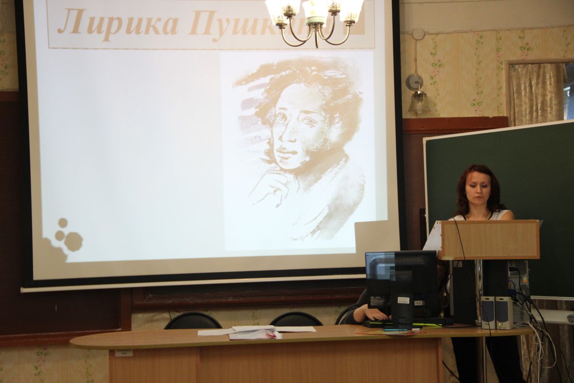Студенты выступили с докладами по заданной теме. Собравшиеся обсудили проблемы преподавания творчества А. С. Пушкина в современной школе. Особое внимание было уделено традиционным и новаторским формам изучения творческого наследия поэта: написанию сочинений, изложений, проведению олимпиад, викторин, конкурсов и т. д.