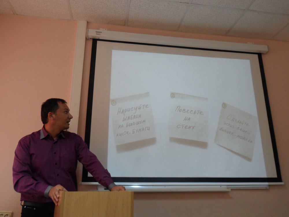 29 сентября стартовало организационное обучение по книге А. Остервальдера и И. Пинье «Построение бизнес-моделей». Первое занятие состоялось на факультете иностранных языков под руководством доцента Э. И. Глинчевского. На занятии рассматривались такие вопросы, как сущность, структура и шаблон бизнес-модели, различные стили бизнес-модели – многосторонние платформы, «длинный хвост», открытые бизнес-модели. В качестве докладчиков выступили: от кафедры восточных языков – доцент В. М. Викторин, от кафедры английского языка для экономических специальностей – доцент А. П. Марюхин, от кафедры английского языка для гуманитарных специальностей – Е. А. Дмитриев, от кафедры романской филологии – Е. Ю. Крылова, от кафедры немецкой филологии – Е. И. Скворцова.