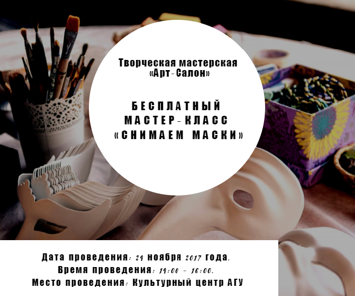 Творческая мастерская «Арт-салон» в рамках студенческого фестиваля «Социализация» проводит бесплатный мастер-класс «Снимаем маски».