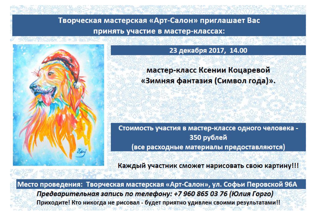 Творческая мастерская «Арт-салон» приглашает всех желающих принять участие в мастер-классе.