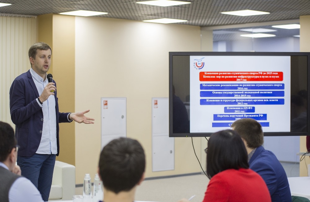 Докладчик семинара вице-президент Общероссийской общественной организации «Российский студенческий спортивный союз «Буревестник» (РССС), президент РССС по Югу России, руководитель Комиссии РССС по взаимодействию со студенческими сообществами Р. М. Ольховский охарактеризовал современный этап развития студенческого спорта. Значительное внимание Роман Михайлович уделил обоснованию концепции развития студенческого спорта России до 2025 года. Вопросно-ответная часть мероприятия затрагивала такие проблемы, как взаимодействие массового спорта и спорта высших достижений, поддержки спорта в вузах, создания новых студенческих спортивных лиг в Астраханской области. Завершая встречу, Р. М. Ольховский выразил уверенность в том, что через пять лет вузы станут центрами спортивной подготовки.