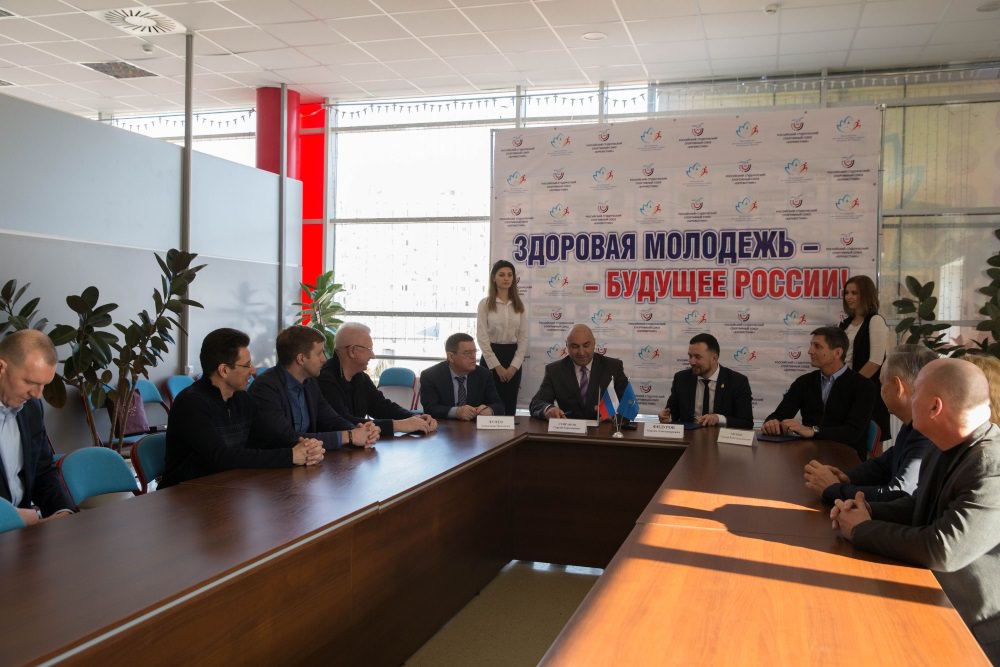 Ректор Московской государственной академии физической культуры, президент Российского студенческого спортивного союза, Федерации тхэквондо России, Московской областной олимпийской академии С. Г. Сейранов поблагодарил собравшихся за интерес к студенческому спорту. По его наблюдениям, у и. о. ректора АГУ есть понимание важности данного процесса.