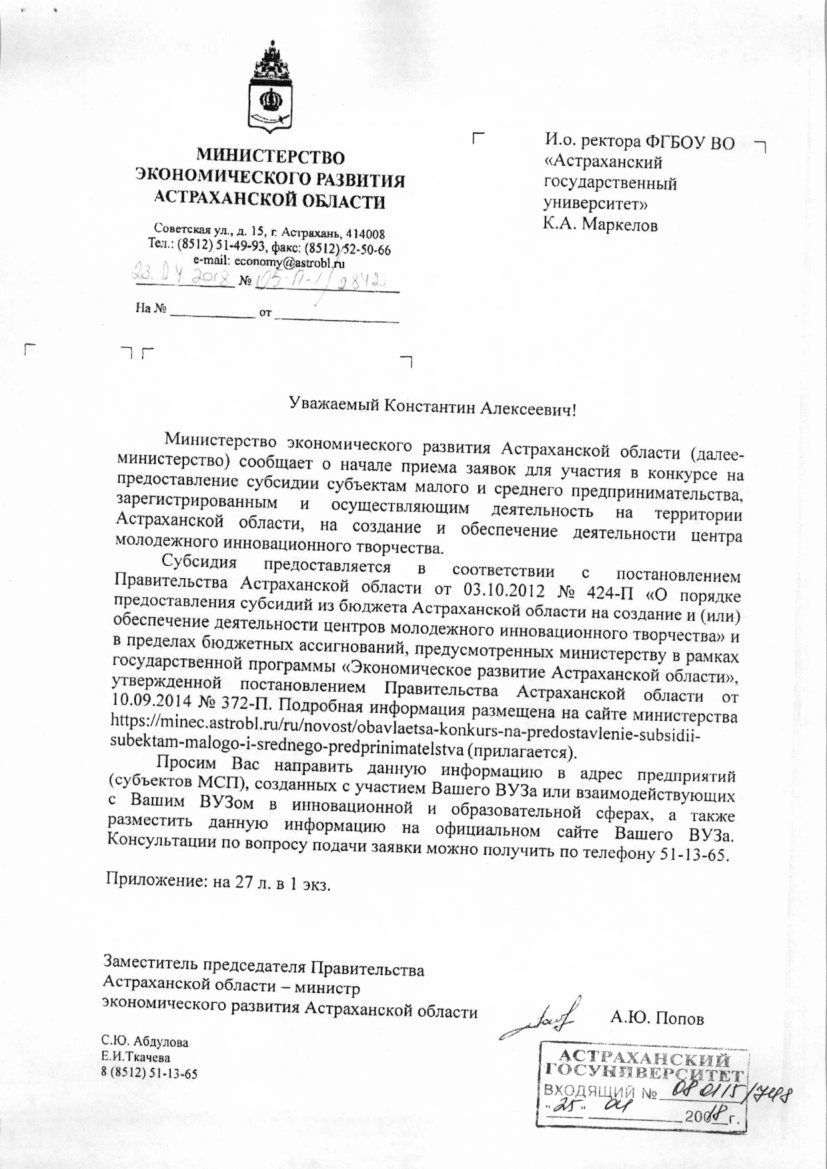 Министерство экономического развития Астраханской области начинает приём заявок на участие в конкурсе на предоставление субсидии субъектам малого и среднего предпринимательства.