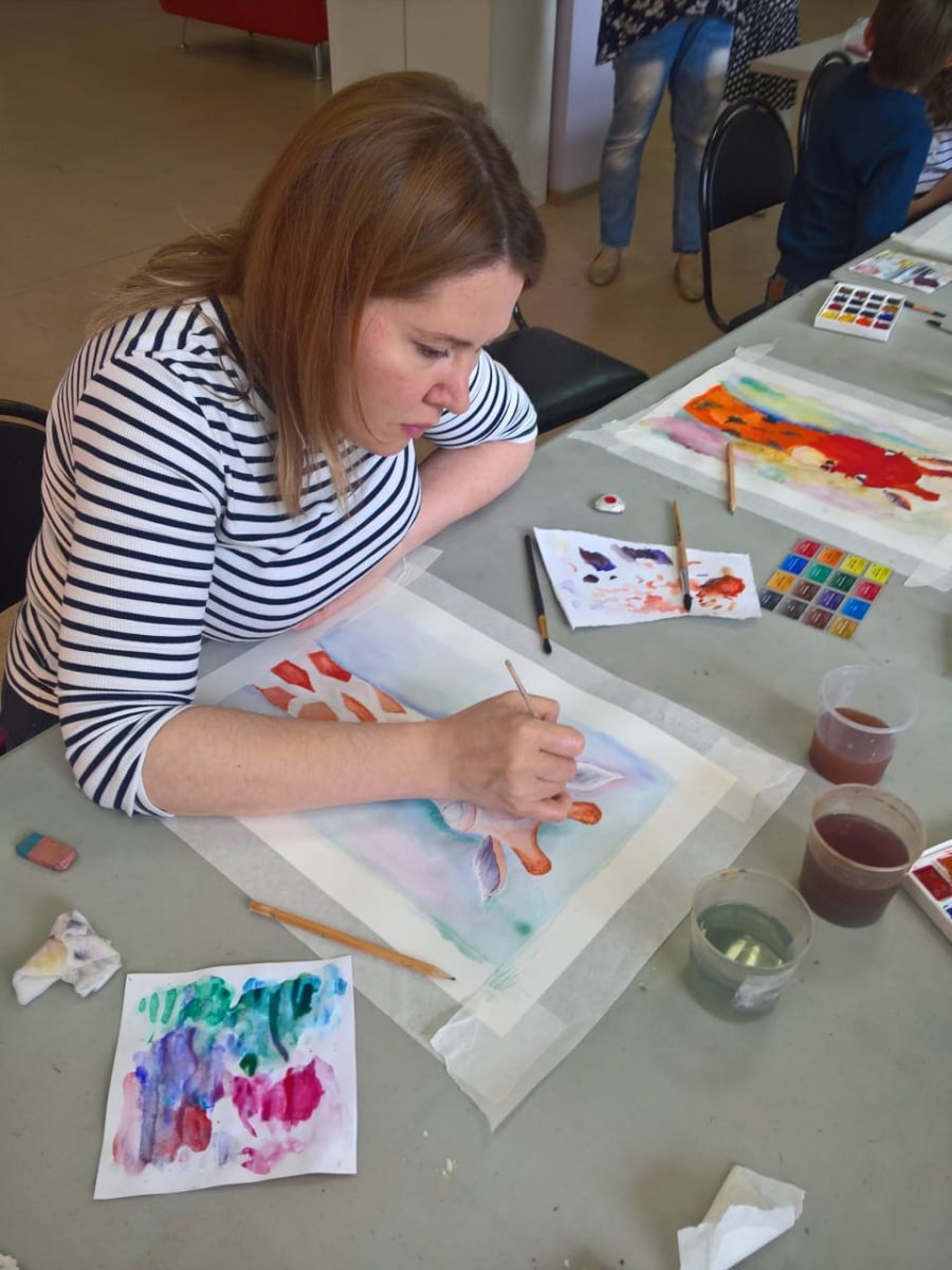 В Творческой мастерской «Арт-салон» прошёл мастер-класс по акварельной живописи под руководством преподавателя детской художественной школы № 1 Елены Скрыпник.