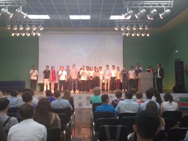 Праздник открыли лауреаты проектов социализации АГУ, исполнив танец «ФМиИТ TEAM».