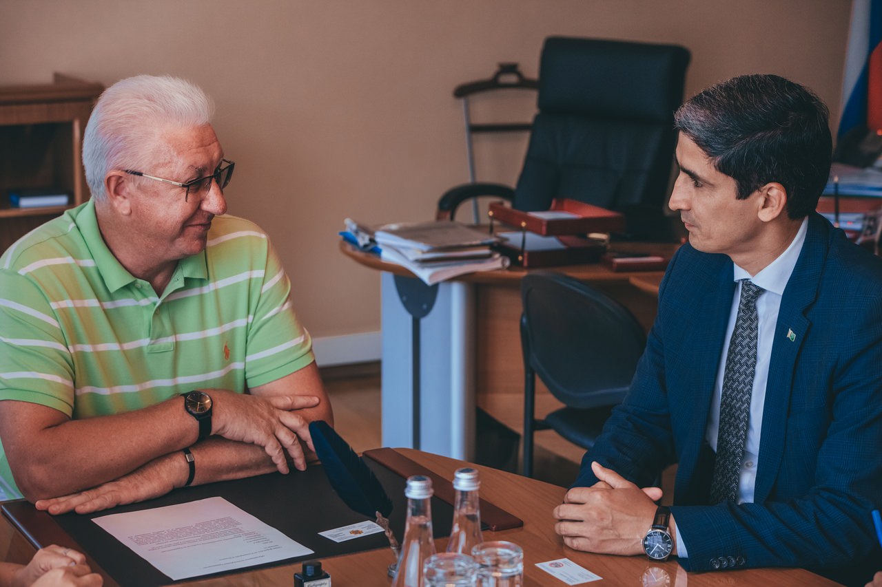 «Вы один из первых, кто откликнулся на нашу просьбу встретиться, — обратился Атадурды Байрамов к Константину Маркелову. — Мы рады нашему сотрудничеству, готовы организовать визит ректора вуза Туркменистана в Астрахань и поддержать ваши предложения по дальнейшим научным проектам с тем университетом, с которым уже есть соглашение».