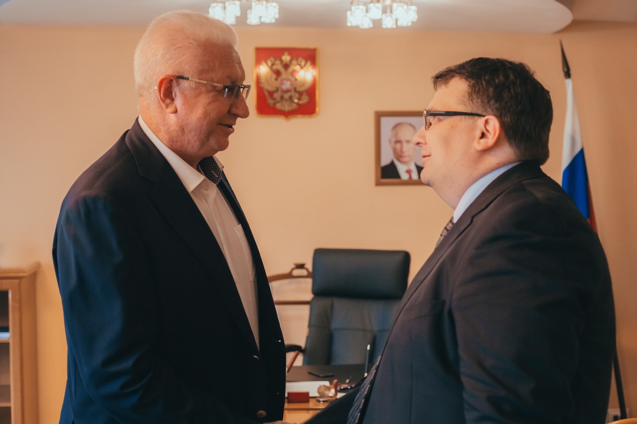 Представители АГУ во главе с исполняющим обязанности ректора Константином Маркеловым встретились с руководителем Управления по делам Содружества Независимых Государств Россотрудничества Сергеем Маленко.