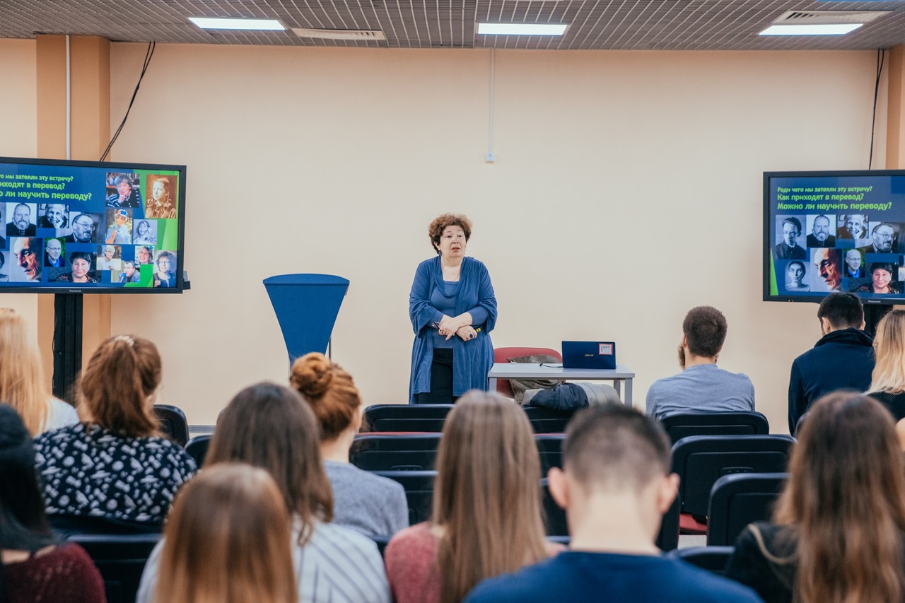 На встрече со студентами гостья рассказала о переводческой кухне, о том, чем сложен и интересен именно художественный перевод, и о качествах, которыми должен обладать настоящий мастер.